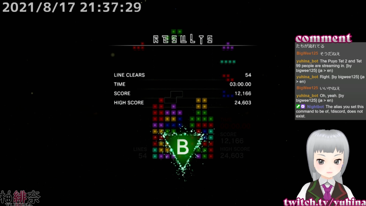 で、まあ昨日は久しぶりの配信をやりました。これが「アップデート前のTETRIS EFFECT最終プレイ」ということです。